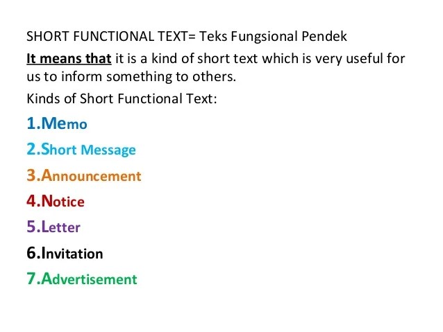 Teks lisan fungsional adalah adalah jenis teks yang biasa disampaikan dalam bentuk pembicaraan yang besifat aplikatis seperti announcementa atau pengumuman. Terkait teks khusus berbentuk pengumuman (announcement). Belajar mengungkapkan makna dalam bentuk teks fungsional pendek, penting bagi peserta didik untuk berinteraksi dengan lingkungan sekitar. Kajian linguistik fungsional sistemik transtivity in indonesia court trial text: Teks fungsional khusus berbentuk pemberitahuan. Return to article details peningkatan hasil belajar membaca teks tulis fungsional pendek berbentuk "greeting card" melalui model pembelajaran tgt di smp . Transitivitas dalam teks peradilan indonesia: Functional text tentang iklan (advertisement). Pada materi teks eksplanasi buku siswa kurikulum 2013 kelas xi semester ii. Pembelajaran bahasa & sastra indonesia berbasis linguistik sistemik fungsional. The extraction was performed as a function of ph and . Kurikulum 2013, siswa smp belajar empat jenis teks yaitu teks fungsional pendek, teks fungsional panjang, teks interpersonal dan teks transaksional. This research was carried out to examine the functional properties of beef lung protein concentrates.